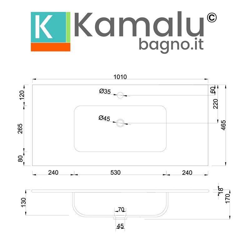 Litos-K7100 Kamalu Lavabo da Incasso in Ceramica Bianca 101cm