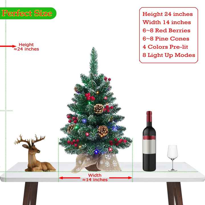 Mini Albero di Natale da 24 Pollici per Decorazione da Tavolo - Albero di Natale di Lusso con Luci | 4 Colori
