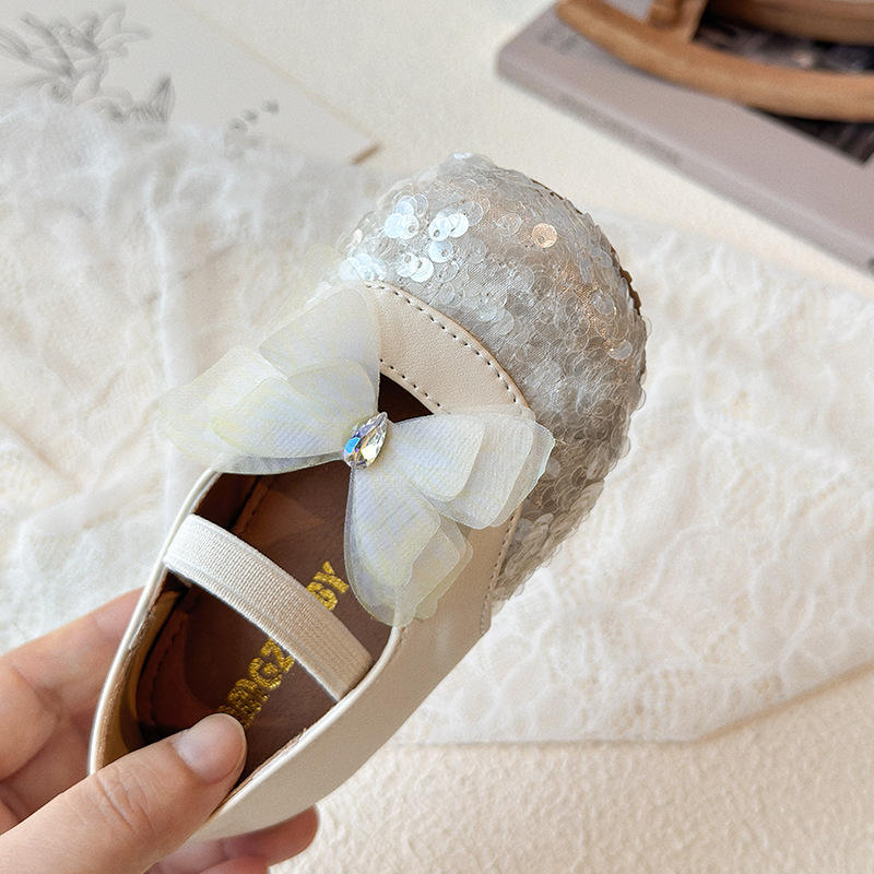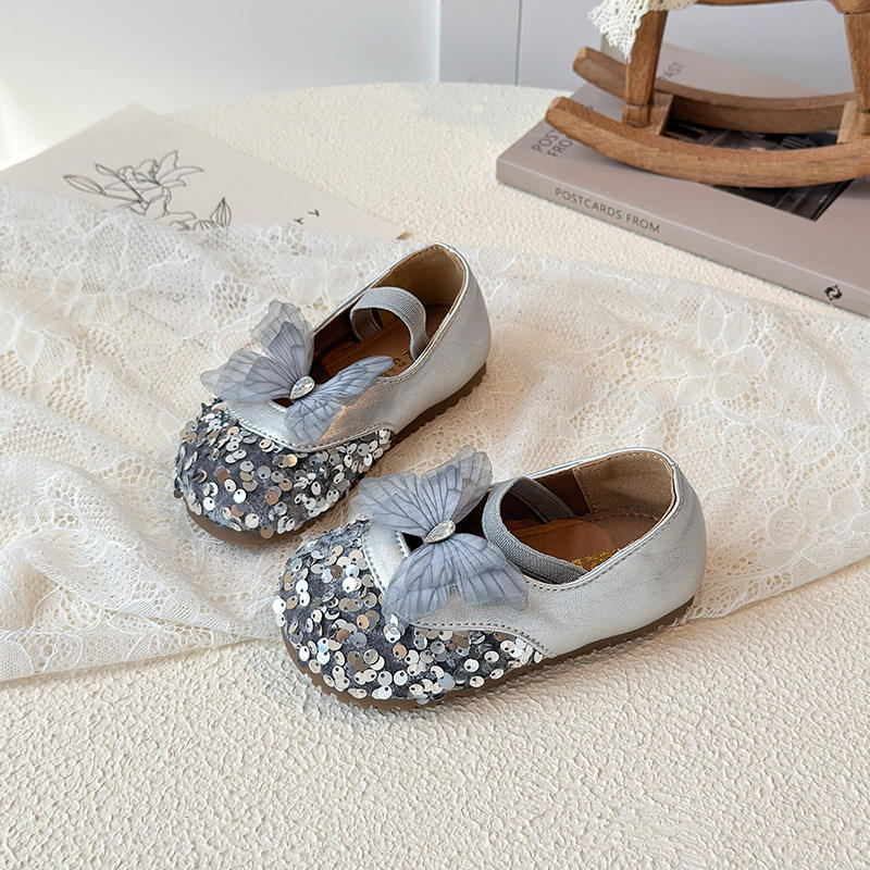 Scarpe da bambina con cinturino alla caviglia, stile coreano, novità Primavera Autunno 2026, con paillettes a farfalla, design da principessa, suola morbida in TPR