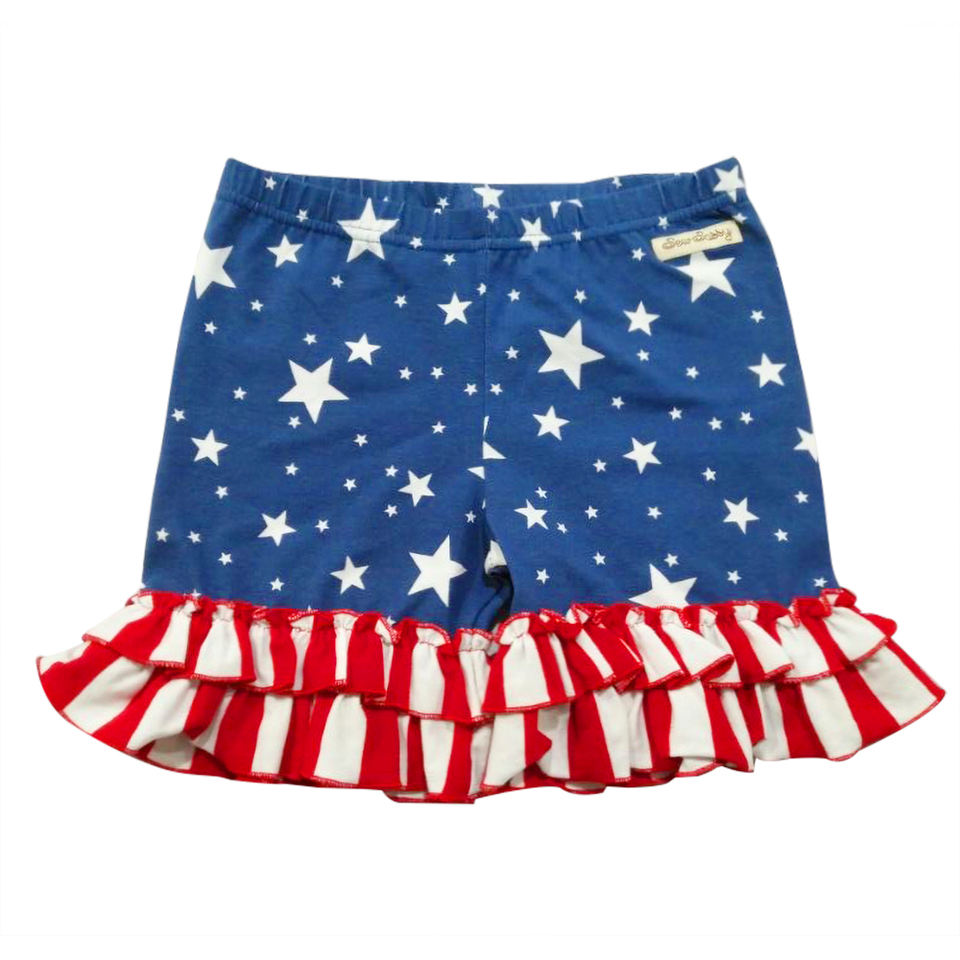 Pantaloncini con volant per bambine per il 4 luglio, stampa patriottica a stelle, a righe rosse e bianche, con orlo arricciato, per il Giorno dell'Indipendenza dei bambini