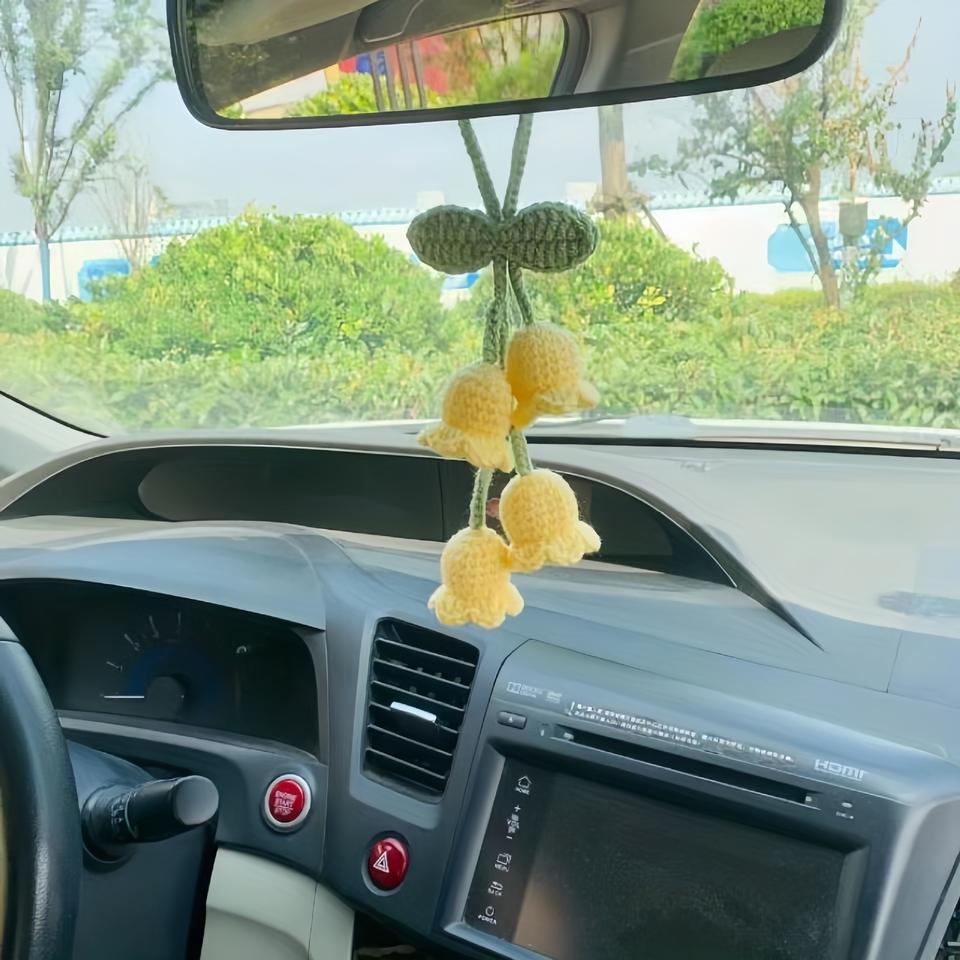 Little Lily Accessori Auto Carini per Donne, Decorazione per Specchietto Auto con Fiore Lavorato a Mano all'Uncinetto, Ornamento Pendente per Auto