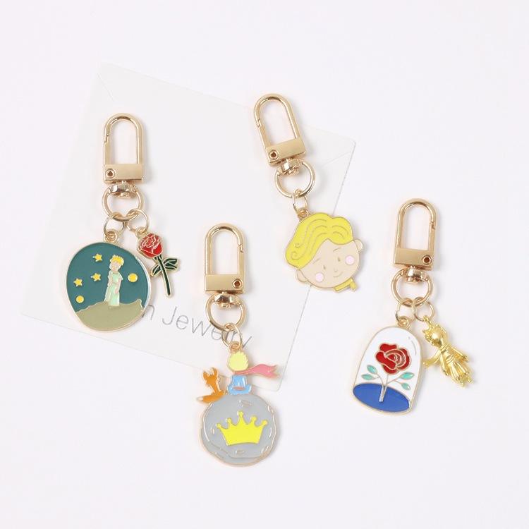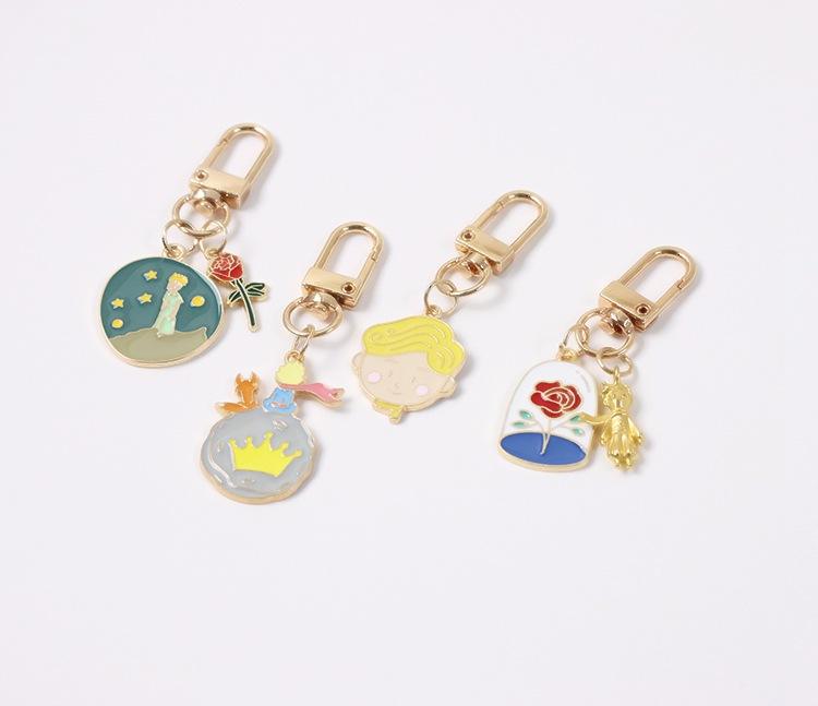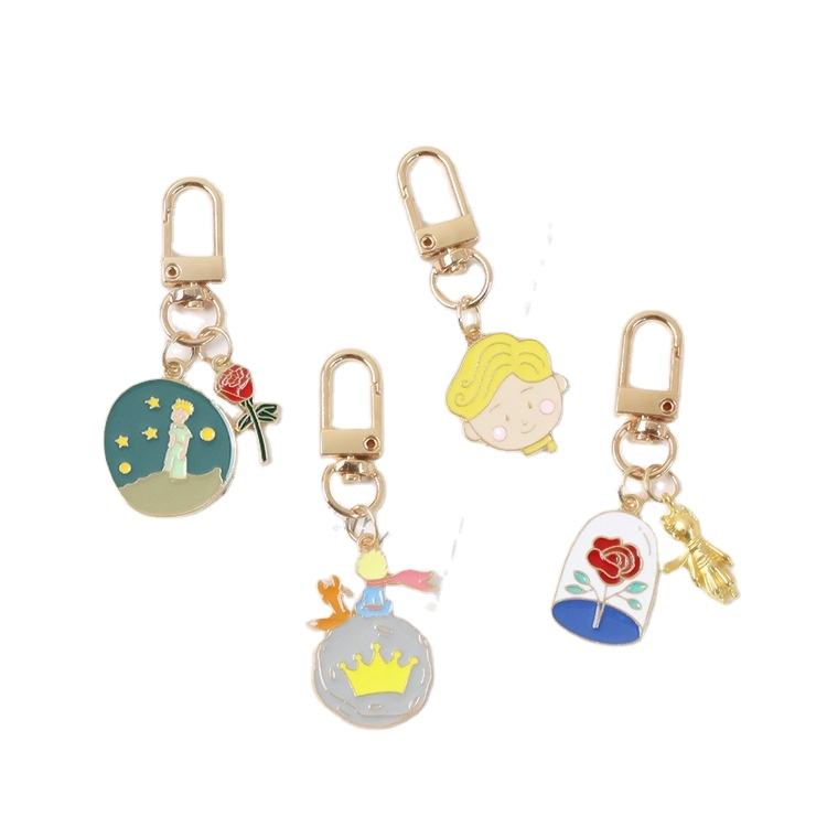 Portachiavi con Ciondolo Rosa del Piccolo Principe, Moschettone in Metallo Resistente, Portachiavi Anti-Smarrimento