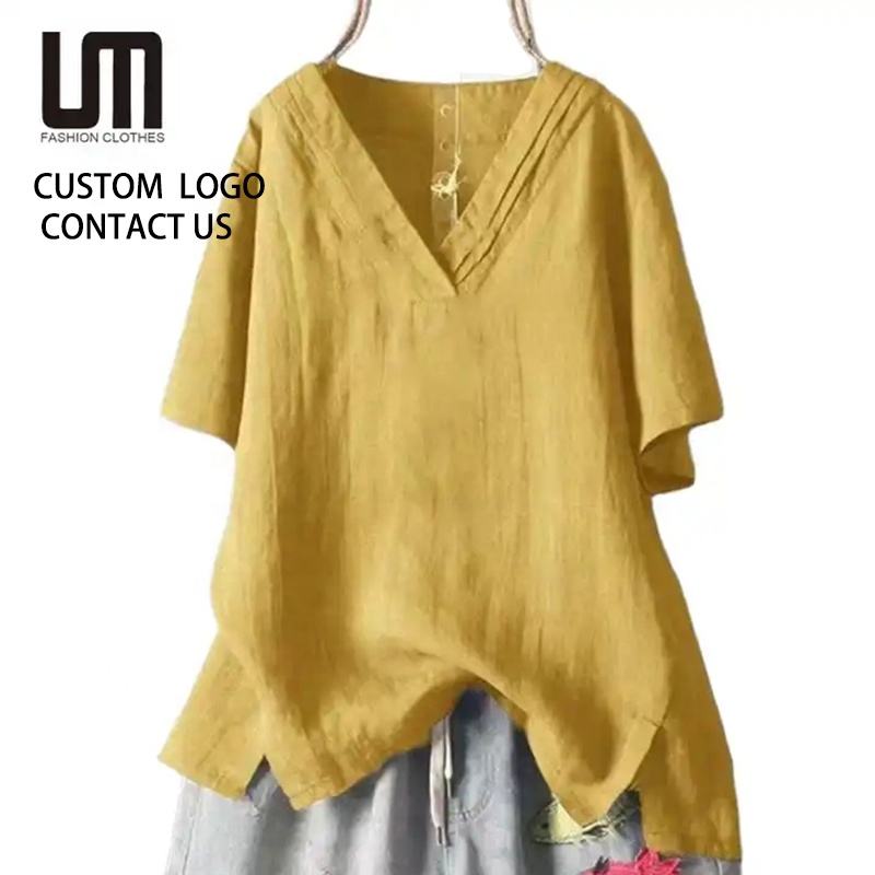 Liu Ming Latest Products Summer Fashion Vintage Women S Clothing Street Casual Elegant Solid Color Tops T Shirt