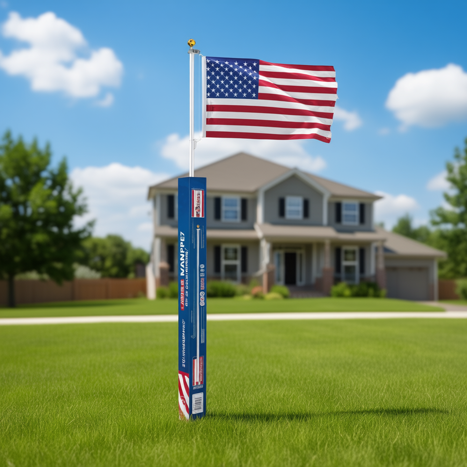 Liuman Aluminum Flagpole Kit 20 Ft Extra Thick Sectional With 1 Polyester Flag Model D0100HPDPE7