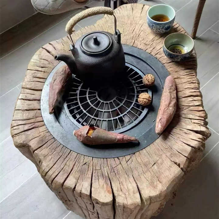 Live Edge decorazione dell'hotel curvo a mano tavolo in legno massello con radice naturale tavolino rotondo in legno