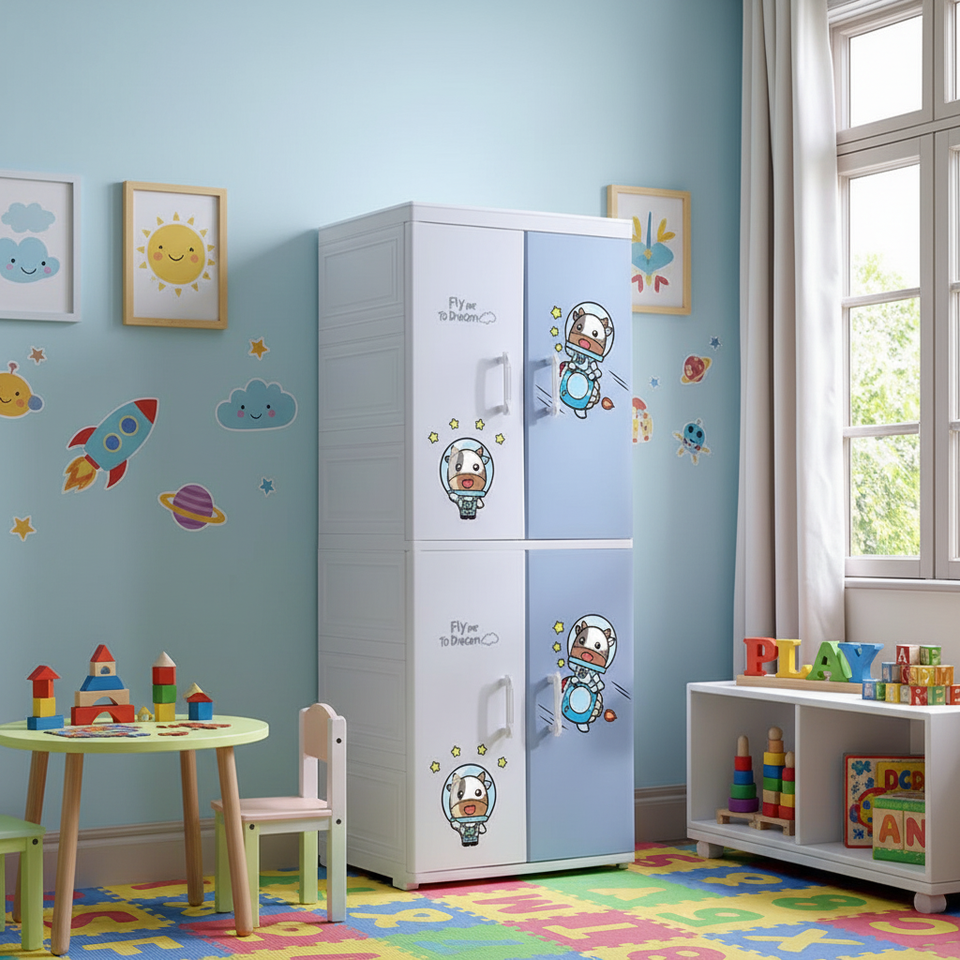 Soggiorno 2 livelli Cartoon Baby Cabinet abbigliamento guardaroba portatile per bambini in plastica guardaroba con ruota