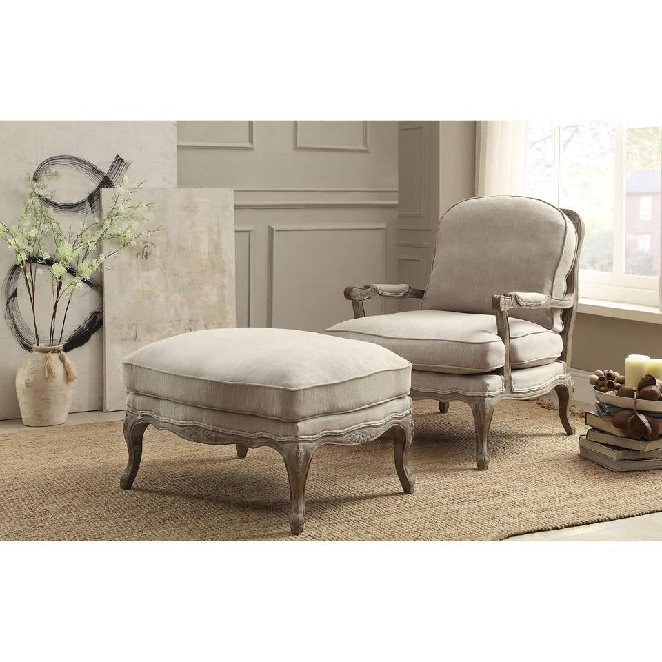 Living Room Accent Ottoman Wood Frame Gray Weathered Finish Textured Fabric Upholstery Foam Seat Cushion