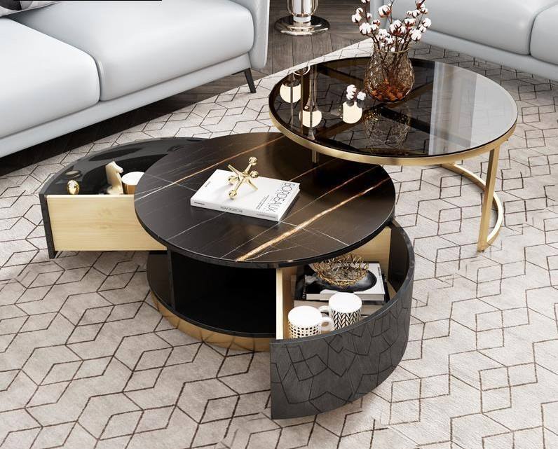 Living Room Furniture Reception Small Side Round Extendable Eco-friendly Modern 2 Set Coffee Table