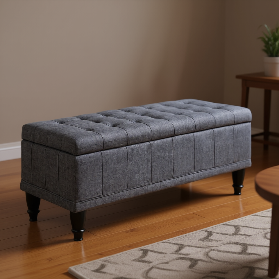 Storage Bench Fabric Tufted Ottoman Living Room Furniture Modern Design