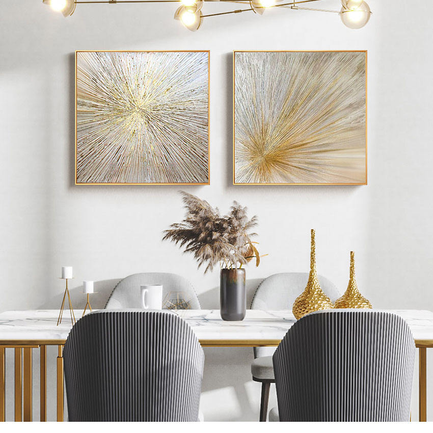 Quadri Astratti Moderni in Acrilico con Foglia d'Oro per Arredamento Soggiorno, Dipinti su Tela