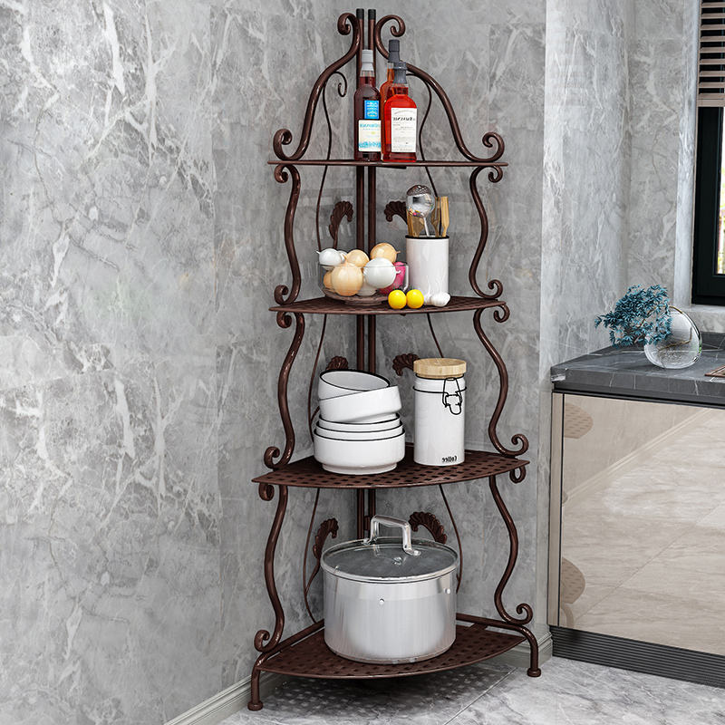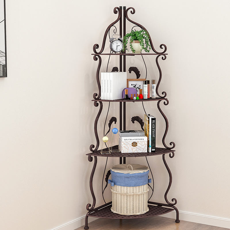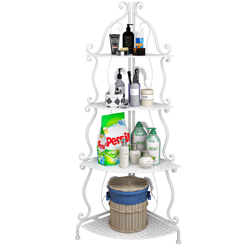 Scaffale Angolare Multifunzione in Metallo a 4 Ripiani Bianco per Soggiorno e Bagno