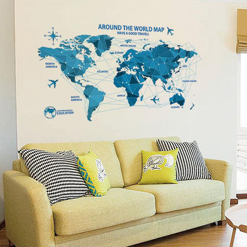 Soggiorno rimovibile mappa del mondo wall sticker decal
