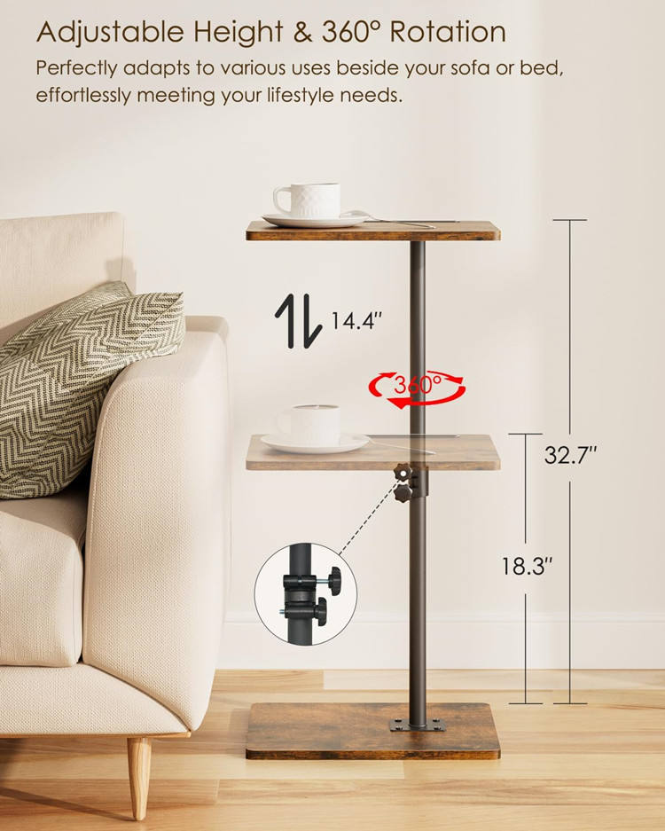 Tavolino da Salotto Salvaspazio Girevole con Altezza Regolabile, Tavolino a C per Divano