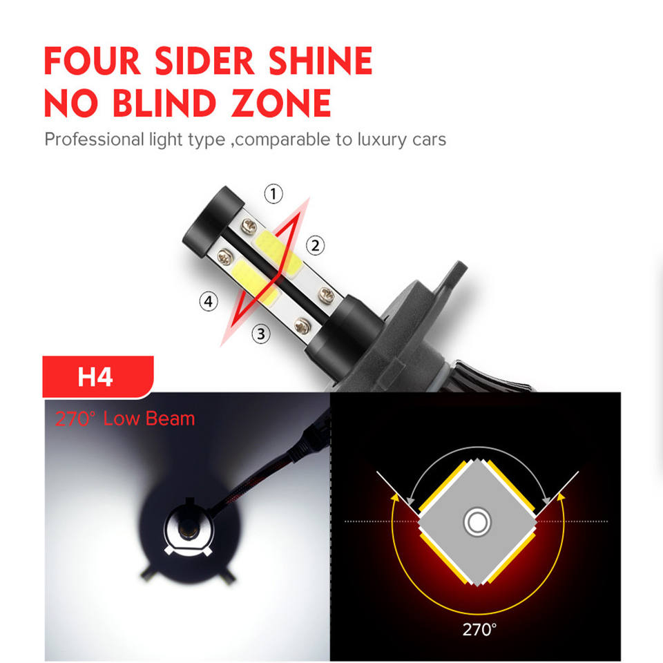 Kit Fari Auto a 4 Lati Liwiny, Lampadine LED H4 H7 per Auto, 8000 Lumen, Sistema di Illuminazione Automatica