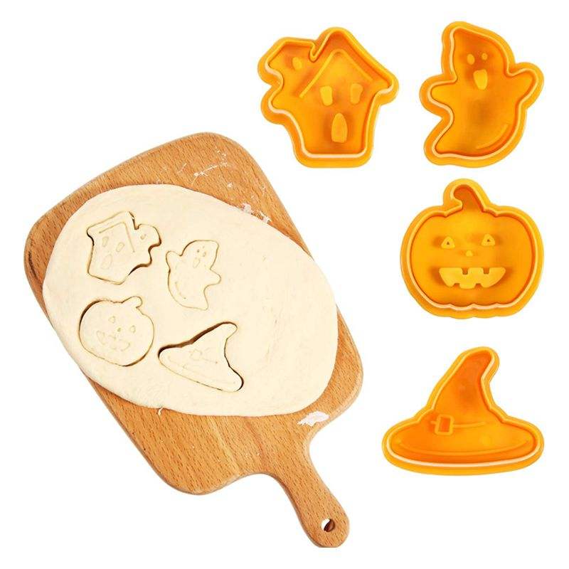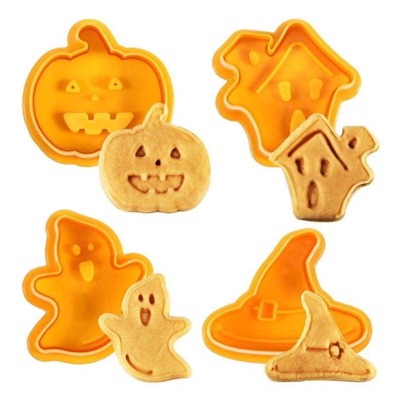 Lixsun 4pcs Plastic Halloween Plunger Cookies Cutter With Cake Decoration Mold