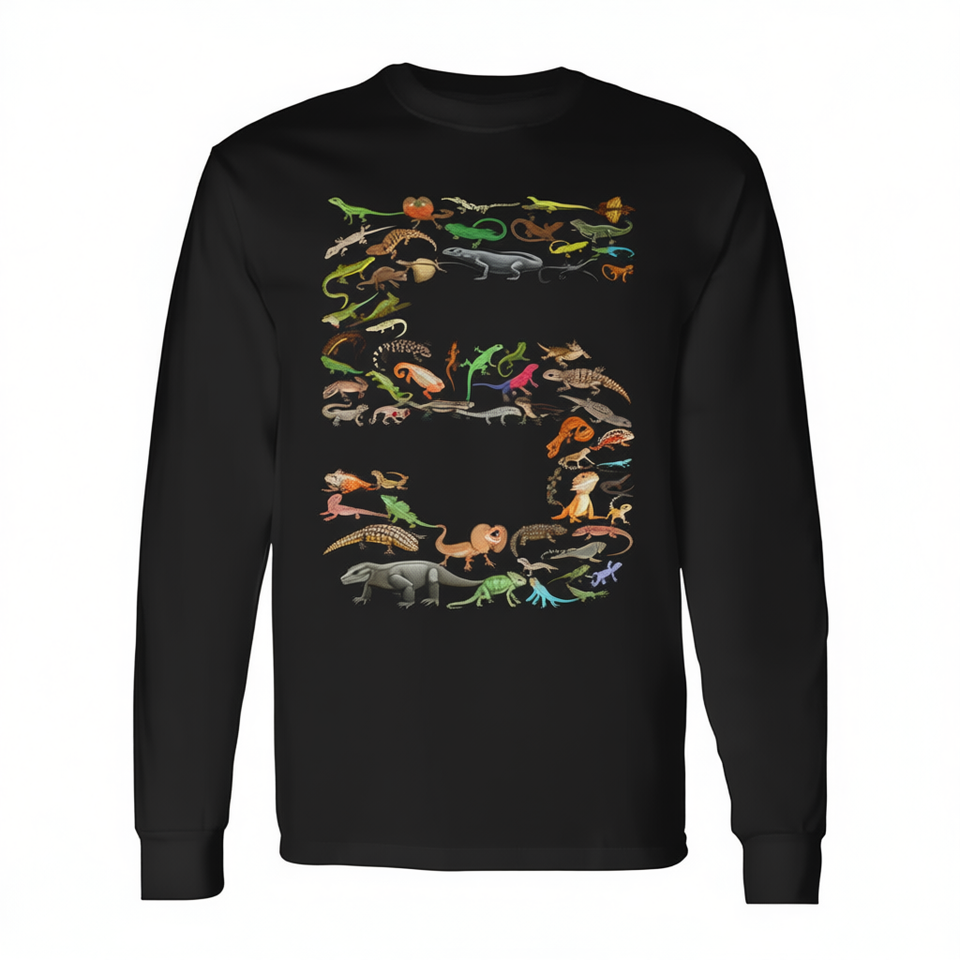 T-shirt a maniche lunghe con numeri e figure di rettili e lucertole per bambini, regalo di compleanno per bambini di 5 anni