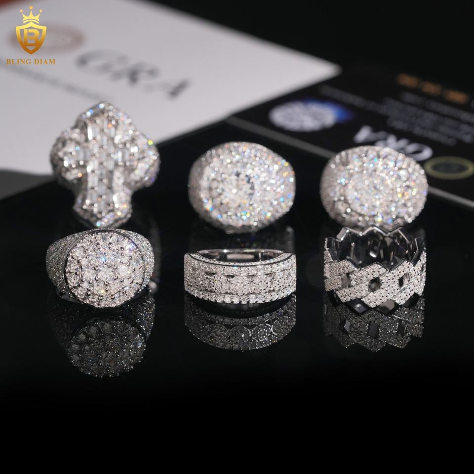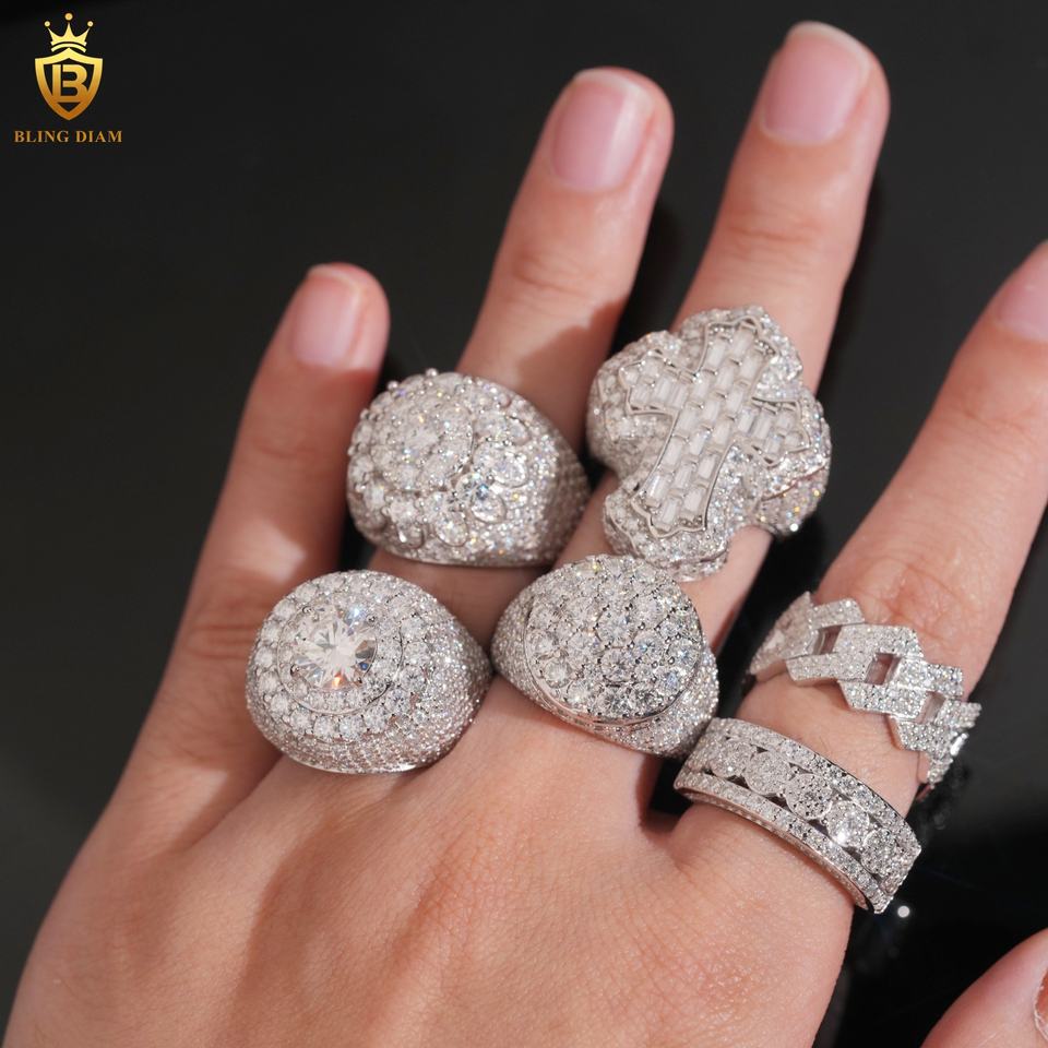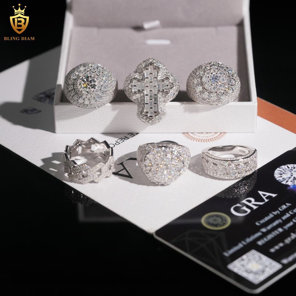 Gioielli Hip Hop Disponibili negli USA, Collezione di Anelli a Croce in Argento Sterling 925 con Moissanite VVS per Uomini e Rapper