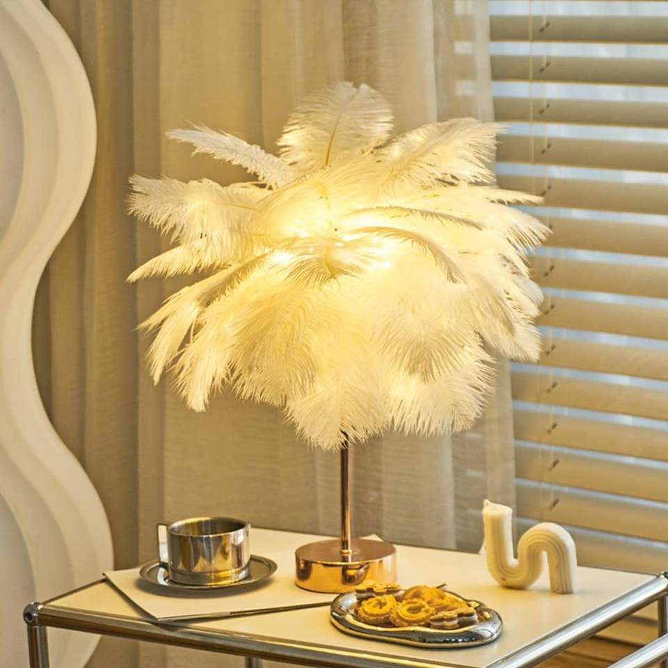 Loftus Art Deco Gold USB Charging Desk Lamp Portable with White Feather & Dimmable Feature