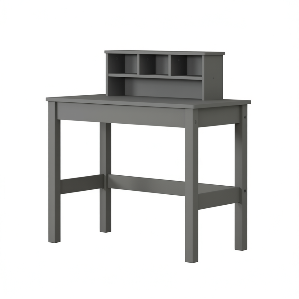 Scrivania per computer con finitura Logan Grey, superficie in legno, mobili per ufficio domestico