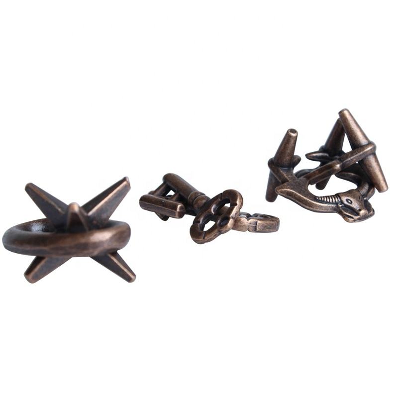Descrizione:Puzzle di logica sblocca grande bronzo 3 pz/set cervello Teaser puzzle di metallo