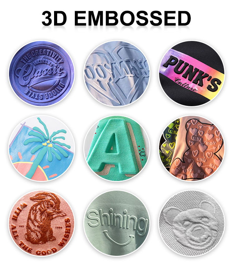 Serigrafia, Stampa digitale, Stampa a trasferimento termico, Ricamato, Stampa del soffio, Flock stampa, Goffrato