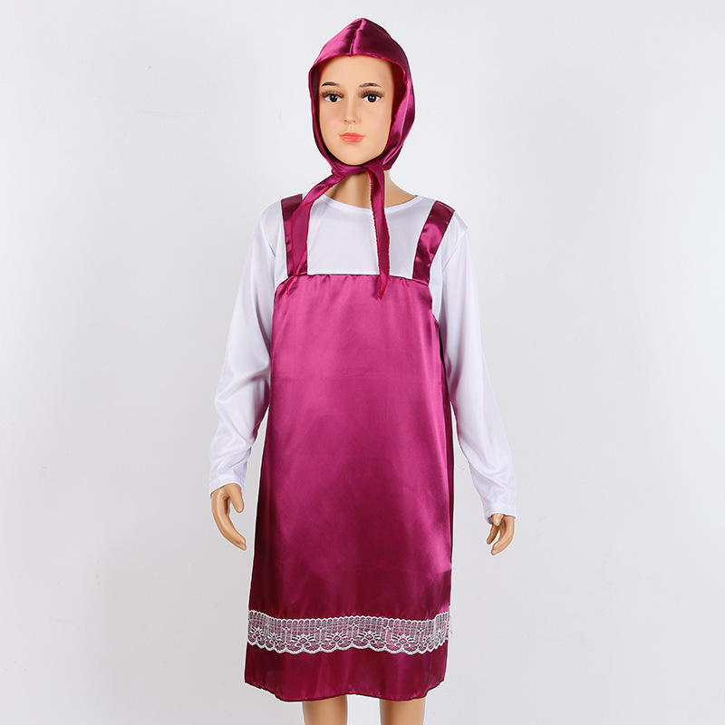 Lolita Masha Cute Bears Baby Girls Dress Toddler Birthday Party Princess Dress Baby Maid Dresses with Head Scarf Kids Clothes