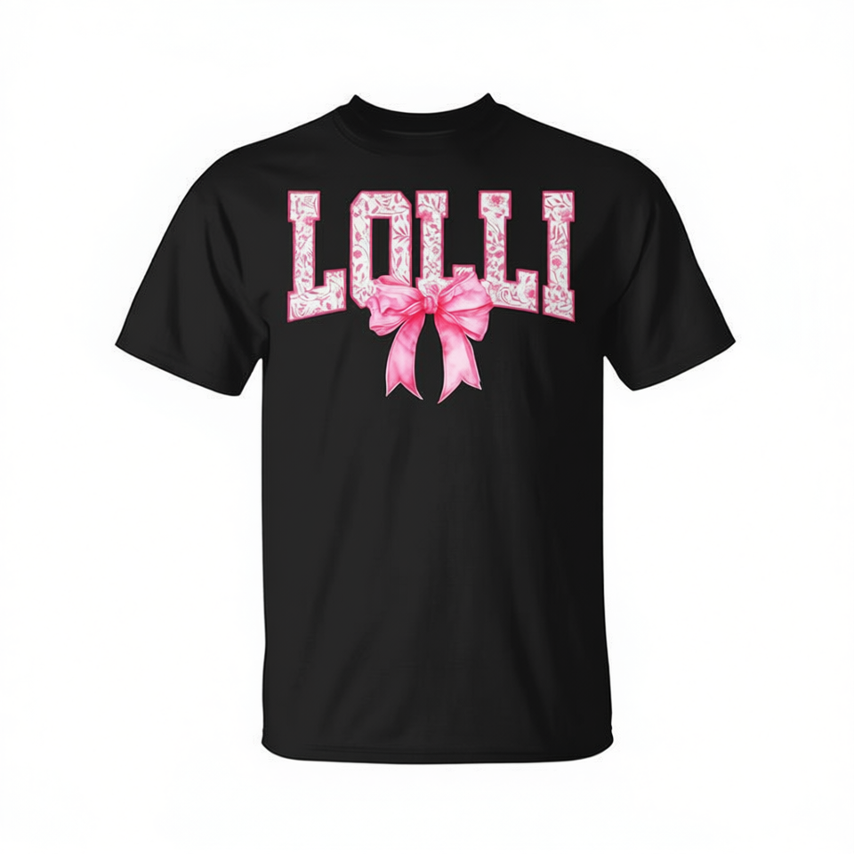 T-Shirt Lolli con Fiocco Coquette e Stampa Floreale Rosa Acquerello, Maglietta Promozionale Elegante per Donne