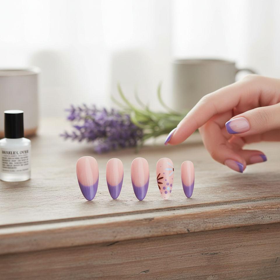 Jinguo Long Coffin Press On Nails Acrylic Full Cover French Style With Glue 12Pcs Medium Length For Finger