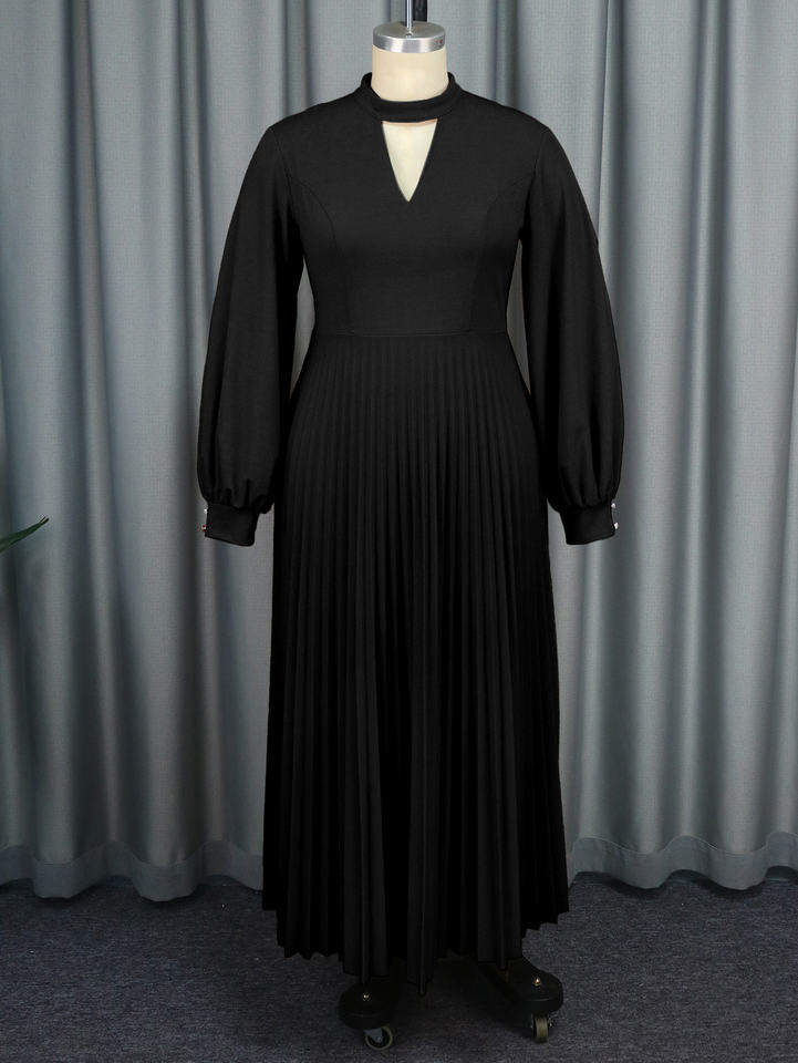 Nome del prodotto:Abiti maxi plissé da donna curvy con maniche lunghe a lanterna ritagliate taglie forti