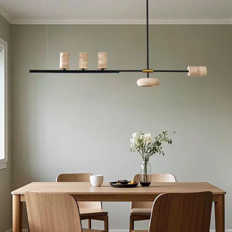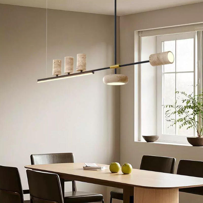Lampadario Lineare Wabi-Sabi in Travertino Giallo Retrò per Ristoranti, Cucine, Sale Artigianali e Bar