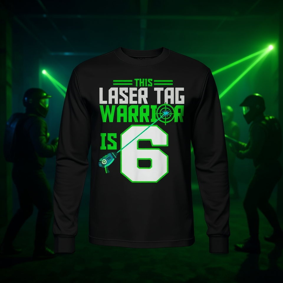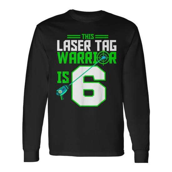 Maglietta a Maniche Lunghe per Festa di Compleanno a Tema Gaming, Design Guerriero Laser Tag per Eventi Promozionali