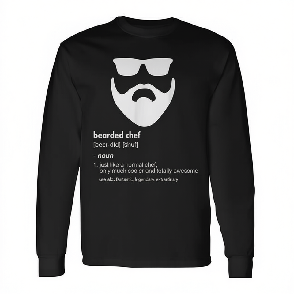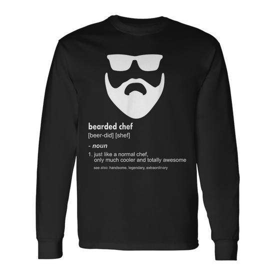 Long Sleeve Bearded Chef T-Shirt Promotional Cook Joke Shirt with Beard Design