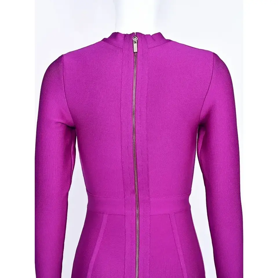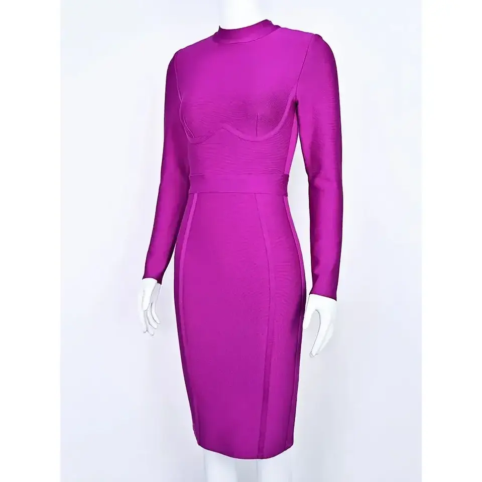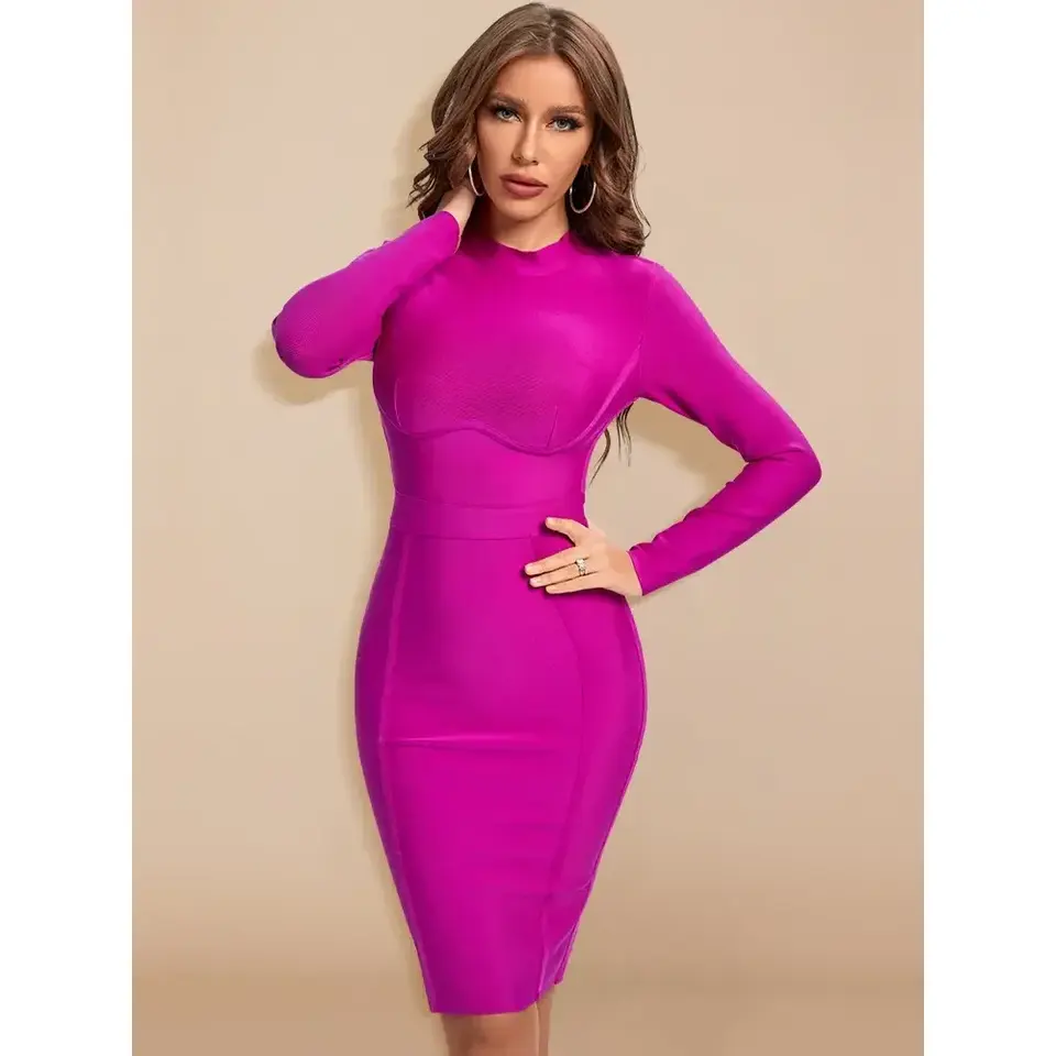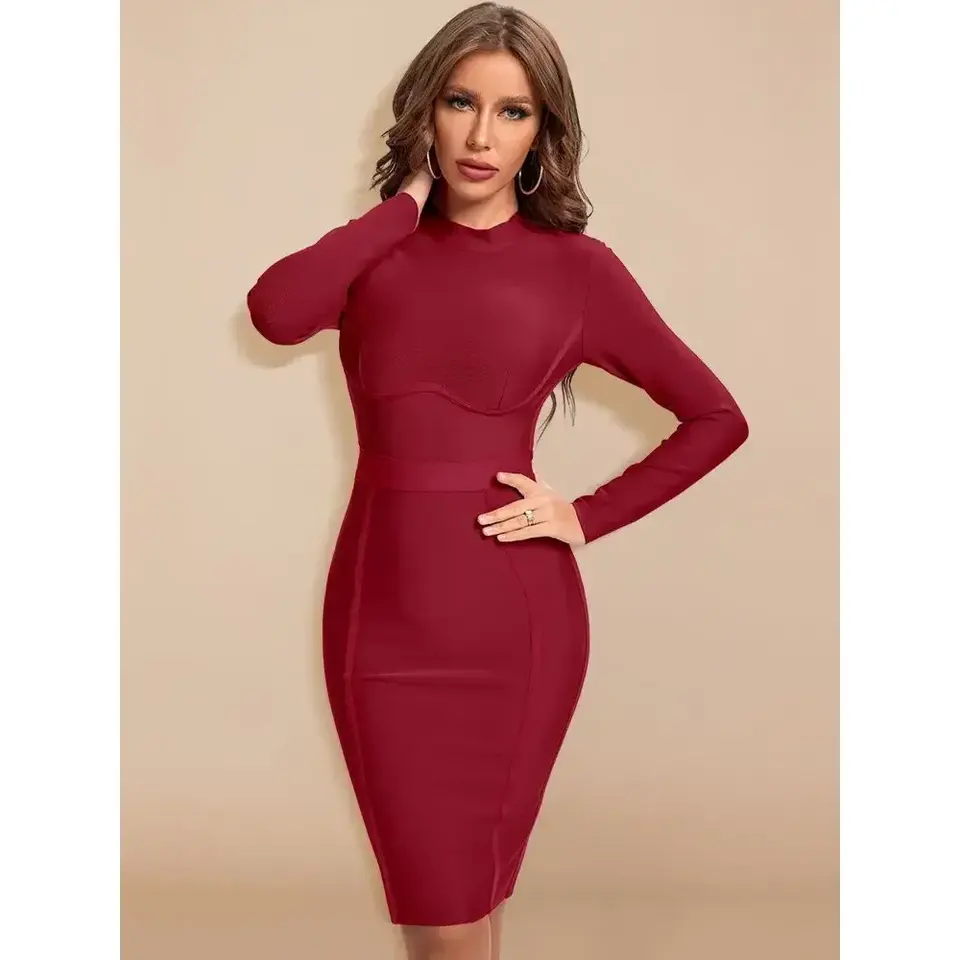 Abito a tubino a collo alto a maniche lunghe, comodo, con fascia HL e vita impero, in fibra sintetica elasticizzata media, per donne in ufficio