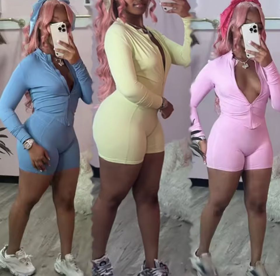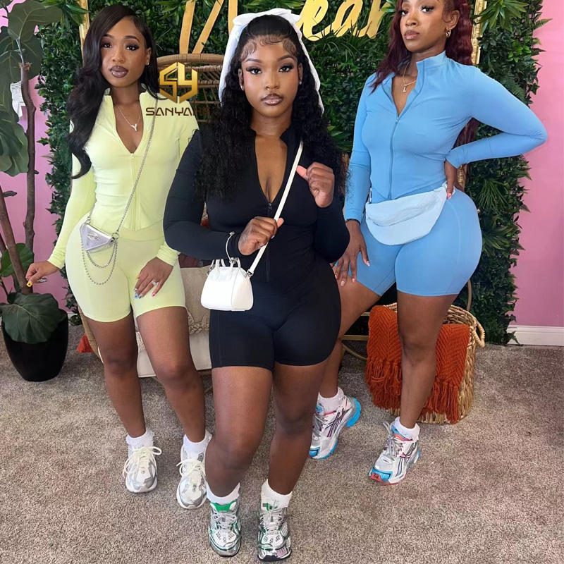 Giacca a maniche lunghe e pantaloncini da motociclista ad asciugatura rapida Yoga sport da palestra 2 pezzi Casual due pezzi set Jogger donna