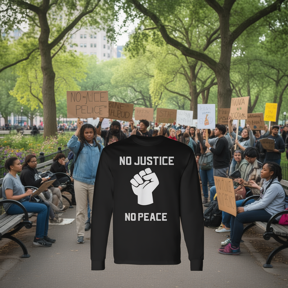T-shirt a maniche lunghe con stampa 'Lives Matter' e 'Power Fist' - 'No Justice No Peace' - Prodotto promozionale