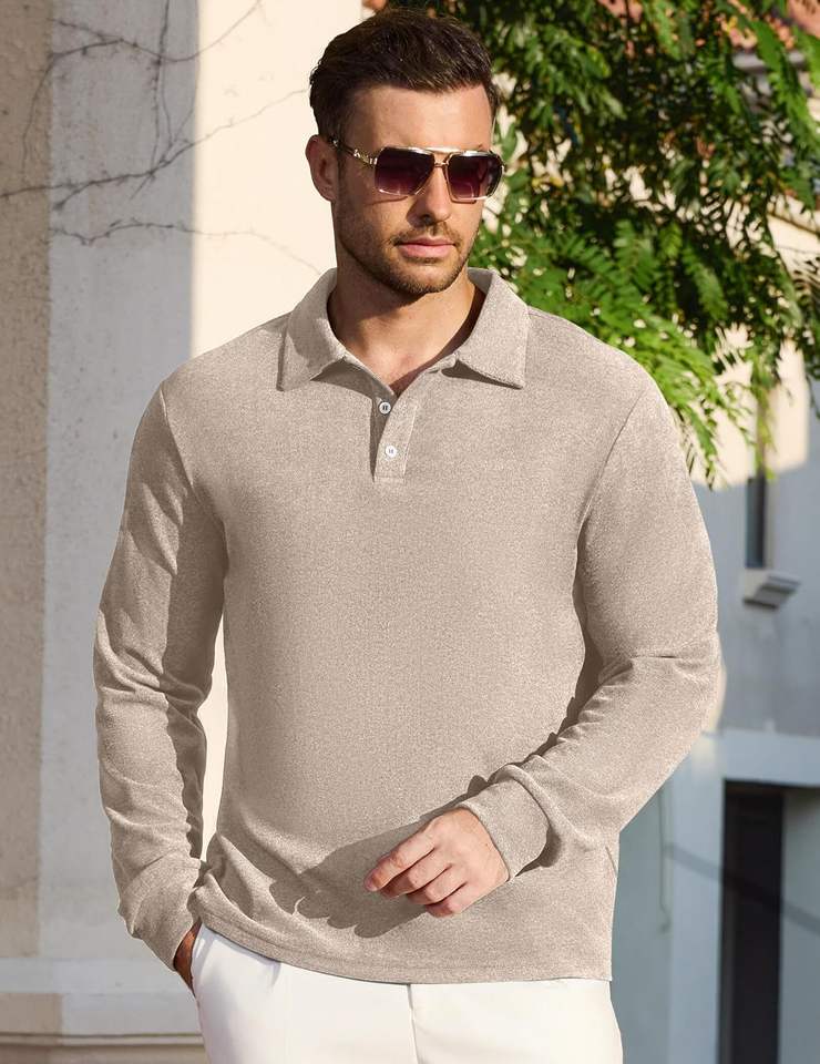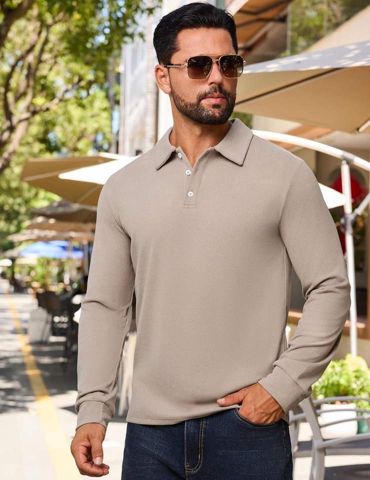 Long Sleeve Polo Shirts for Men Classic Button Golf Shirt Casual Collared Thermal Work Pullover Tops