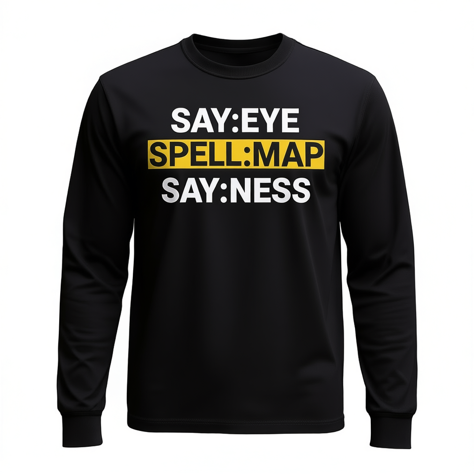T-shirt promozionale a maniche lunghe con stampa Eye Spell Map Ness Prank Say Eye per eventi e pubblicità