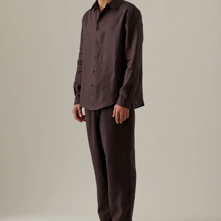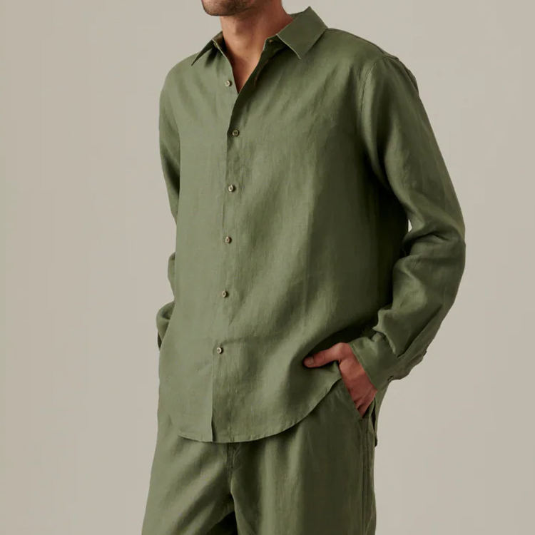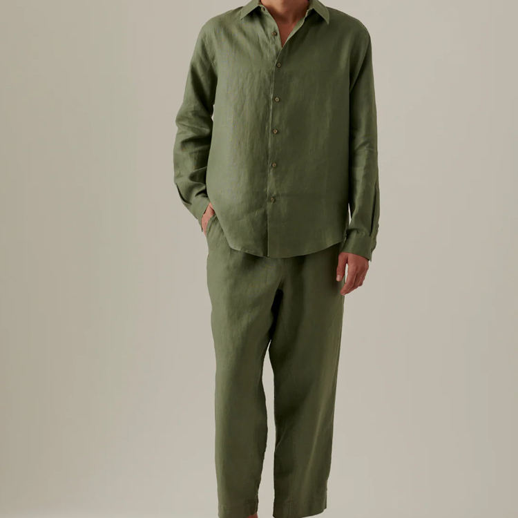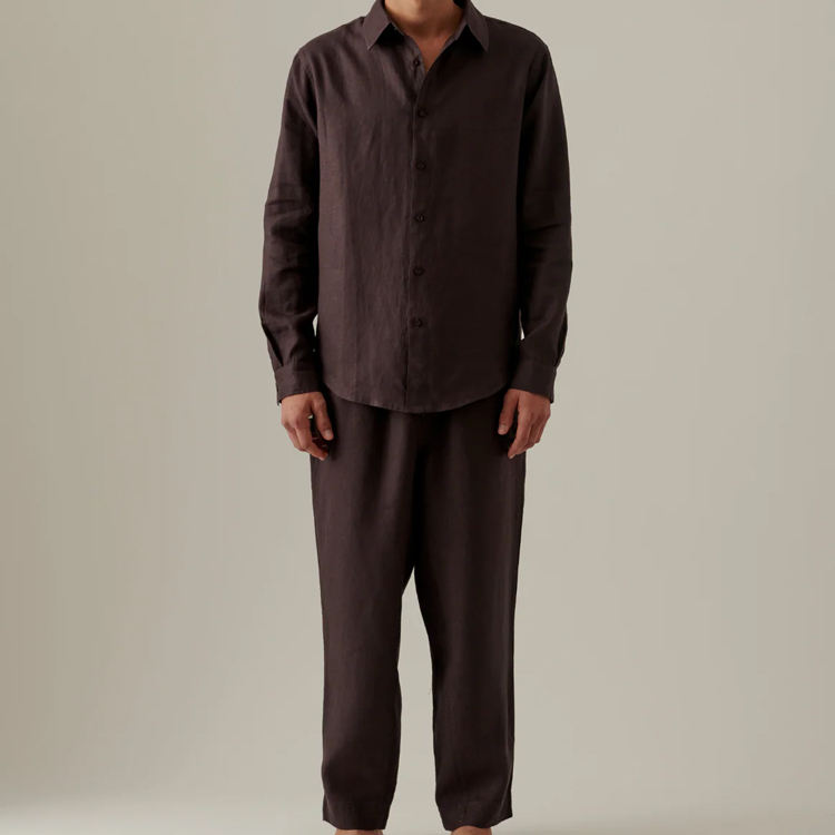 Set pigiami a maniche lunghe in cotone di lino e pigiama da uomo camicia con bottoni e pantaloni biologici da uomo
