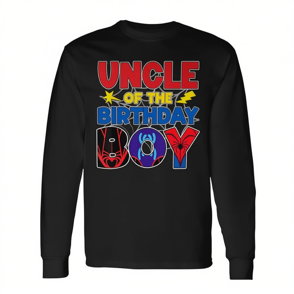 T-shirt a maniche lunghe coordinata per la famiglia a tema ragno, per zio e bambino di compleanno, personalizzabile per promozioni