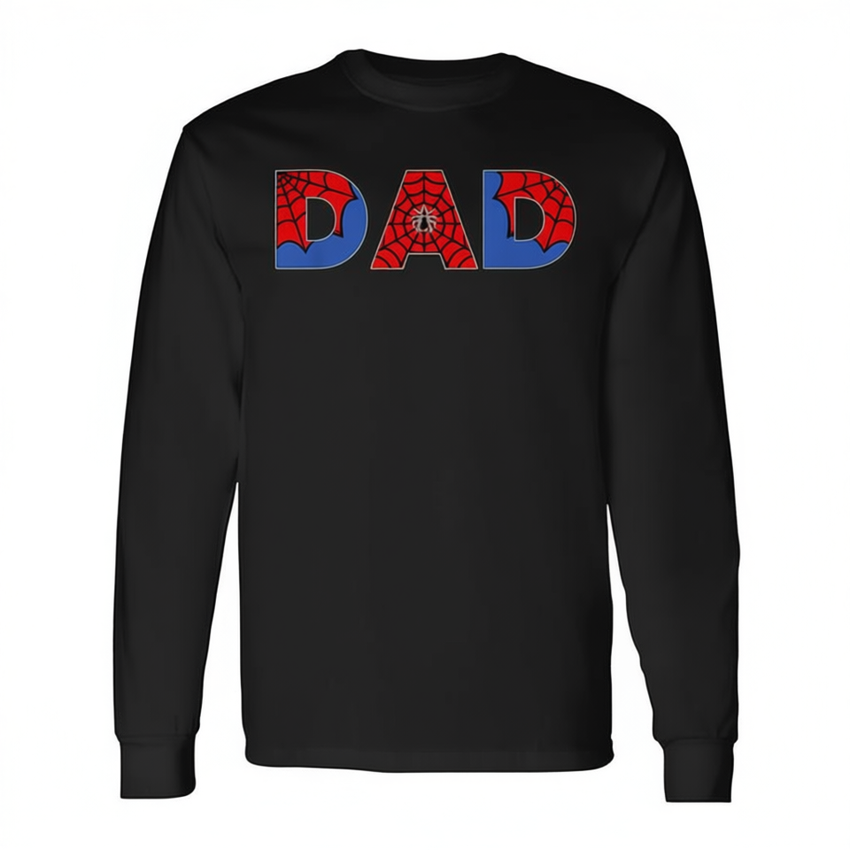 T-shirt a maniche lunghe girocollo con stampa serigrafica a tema Famiglia di Ragno per la festa di compleanno di papà, promozionale, da uomo adulto