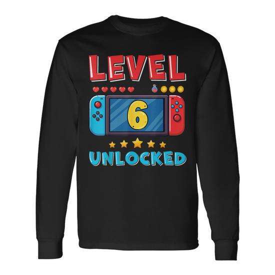 Maglietta a maniche lunghe per il 6° compleanno di Gamer Boy, design Livello 6 sbloccato per bambini