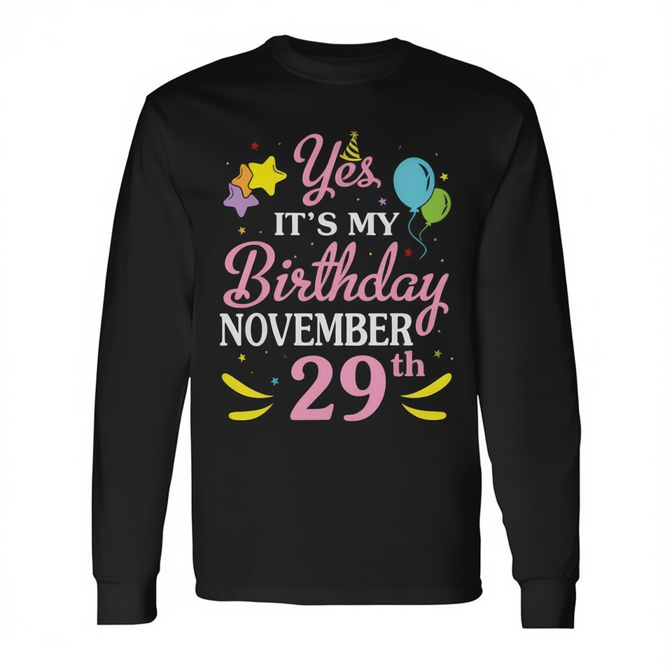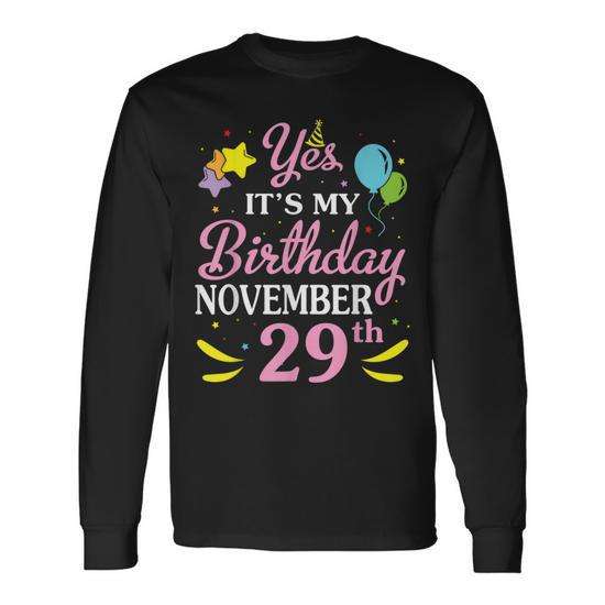 T-shirt a maniche lunghe per compleanno, 29 novembre, girocollo unisex, stampa digitale, abbigliamento da festa