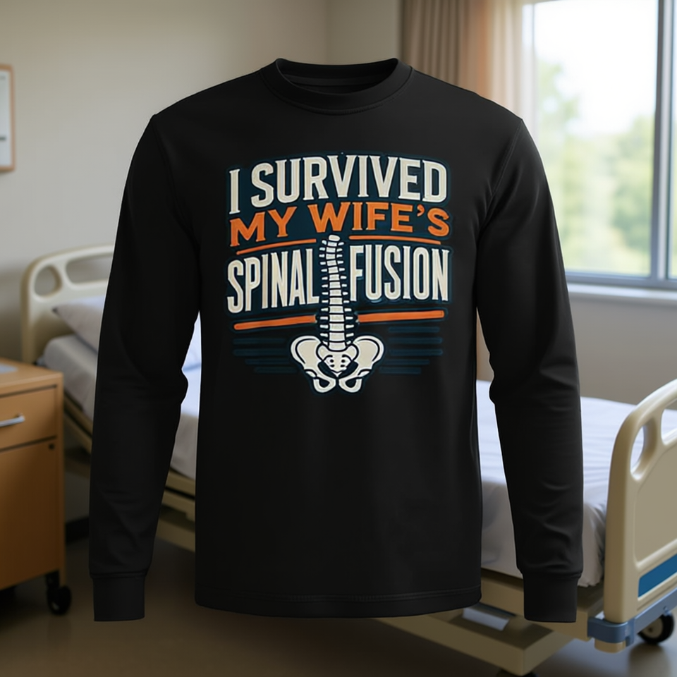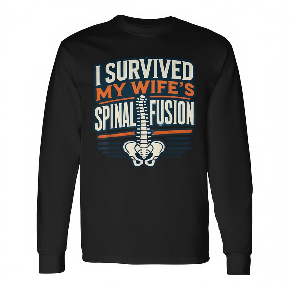 T-shirt a maniche lunghe - T-shirt promozionale per il recupero dalla chirurgia di fusione spinale della moglie, che ho sopravvissuto.