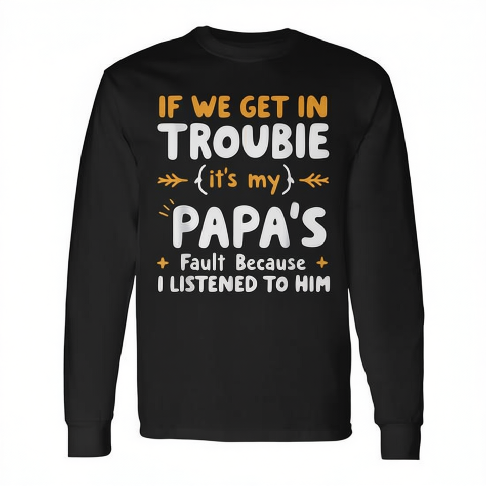 Maglietta a maniche lunghe: Se ci metteremo in guai, è la colpa di mio papà, ho ascoltato quello che ha detto.