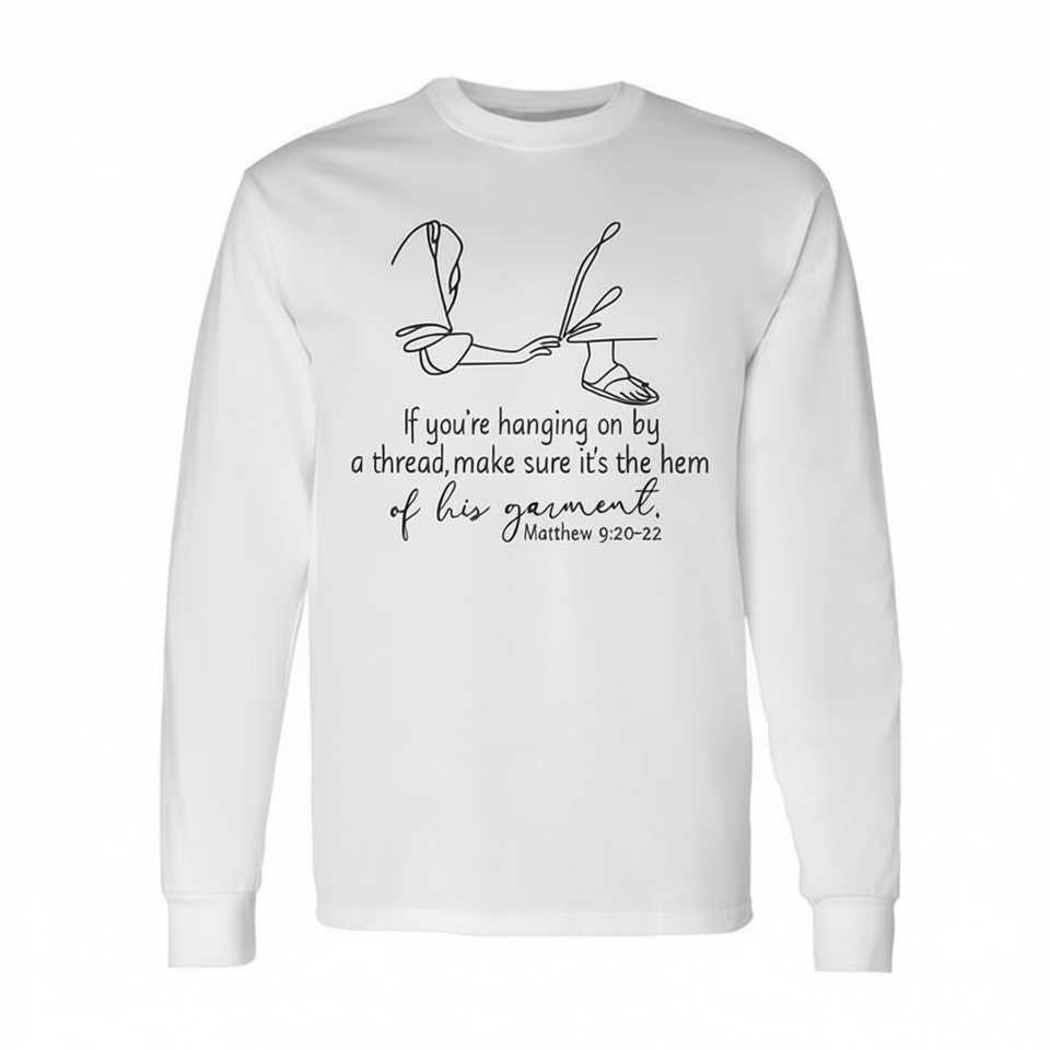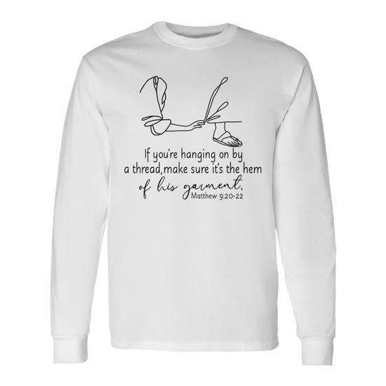 Maglietta a maniche lunghe: Se sei appeso a un filo, assicurati che sia il bordo che ti sostiene - Matteo 9:20-22