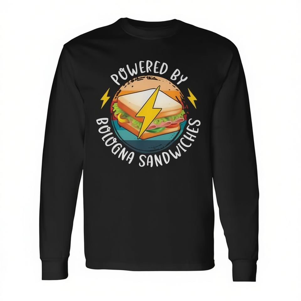 Maglietta a Maniche Lunghe per Amanti della Cucina Italiana, Salsiccia Baloney, Sandwich Fritto alla Bologna per Promozioni