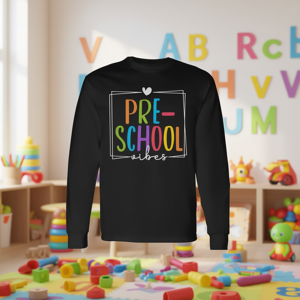Maglietta a Maniche Lunghe per Insegnanti della Scuola Materna, Prodotto Promozionale per il Ritorno a Scuola con Atmosfera Prescolare per Bambini