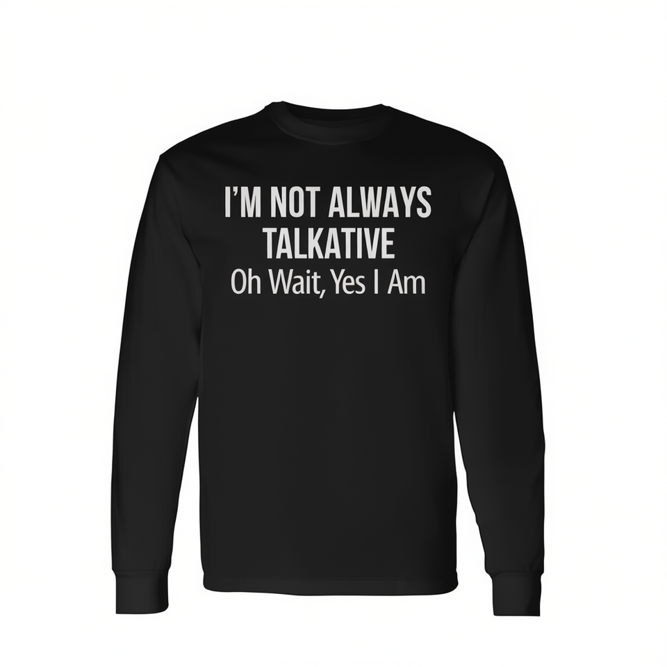 T-shirt a maniche lunghe con grafica divertente e giocosa 'Non sono sempre chiacchierone, ma sì, lo sono' per promozioni