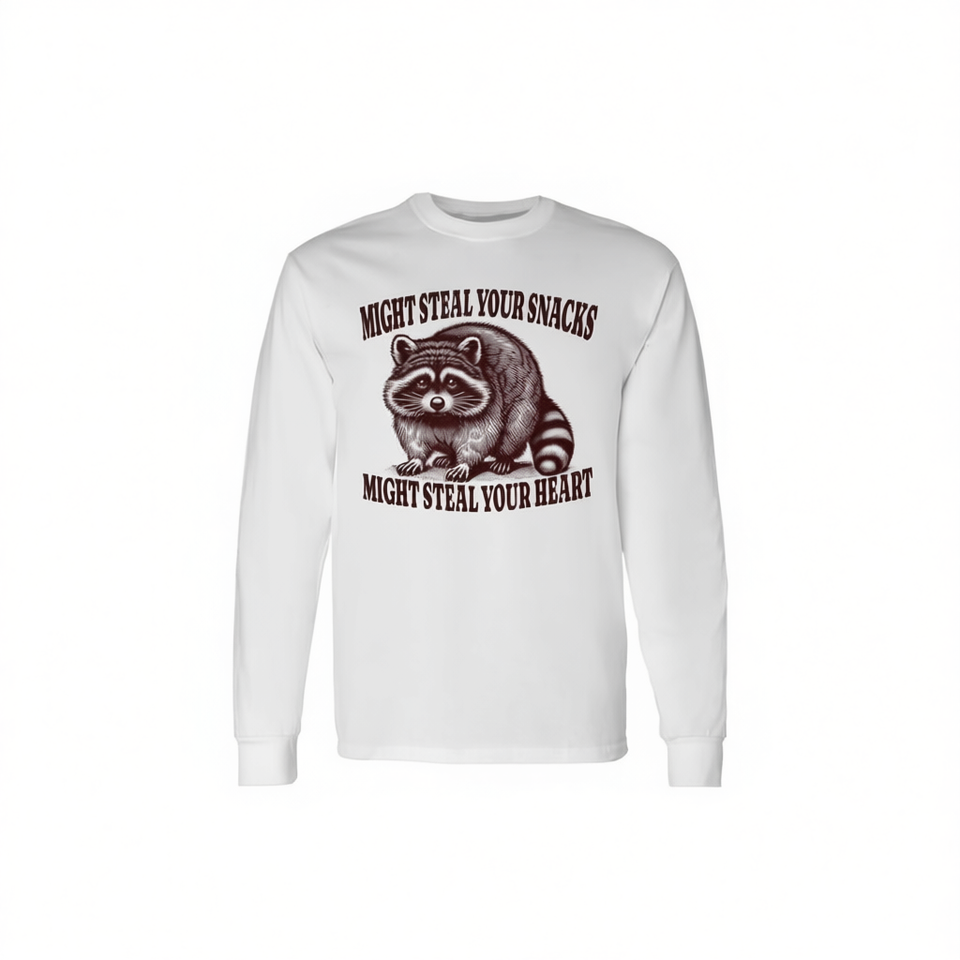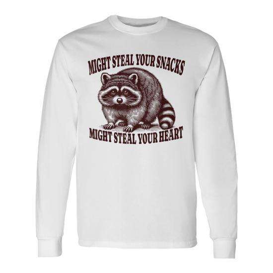 T-shirt a maniche lunghe con design procione 'Potrebbe rubare le tue snack, potrebbe rubare il tuo cuore' - T-shirt promozionali