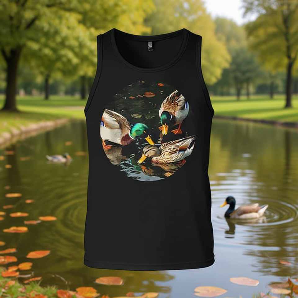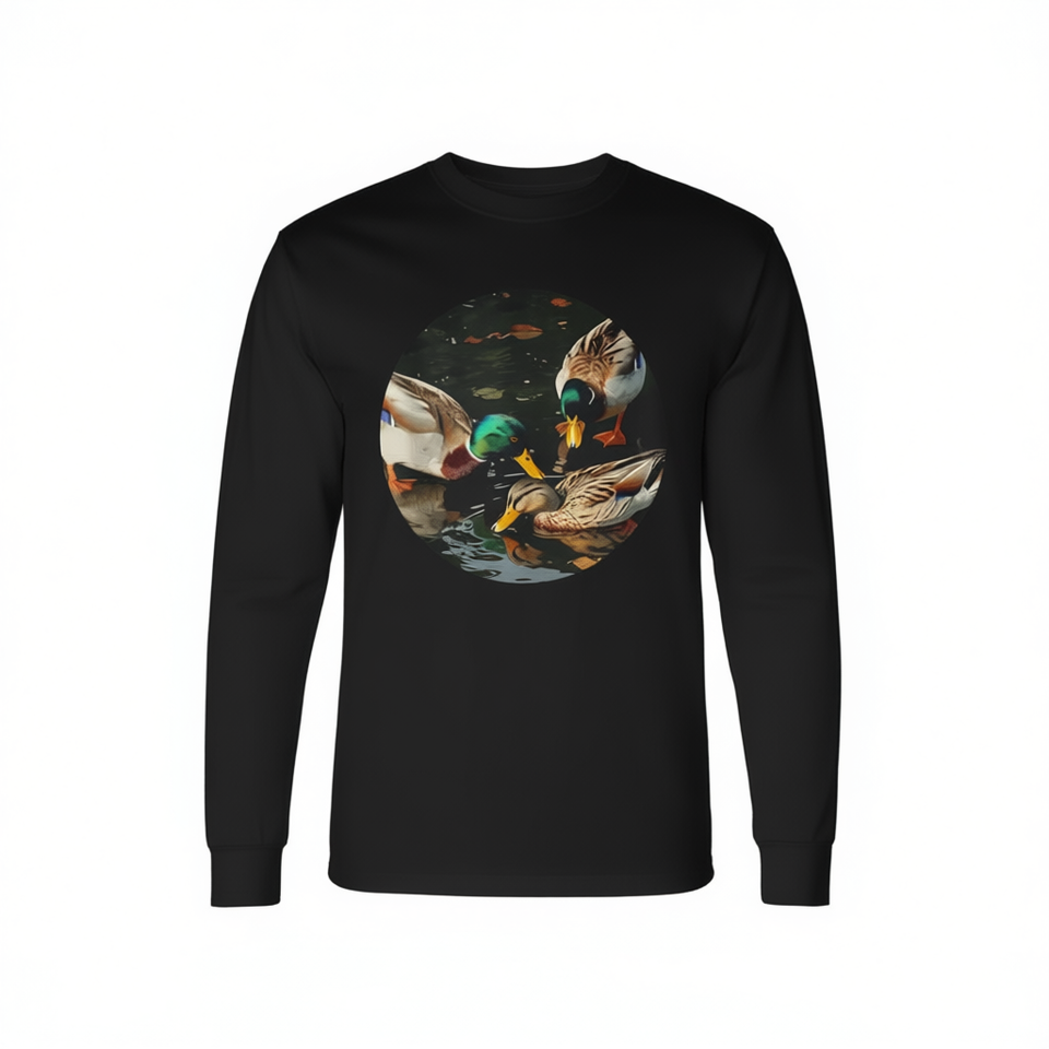 Maglietta a maniche lunghe per gli amanti dei paperai, design 'Ducks in Park', t-shirt promozionale